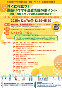 厚生労働科学研究研究班から一般の皆様へ向けたリウマチ性疾患関連の講演会やイベントについての情報をお知らせします。